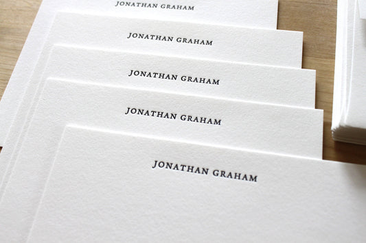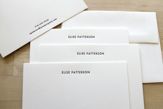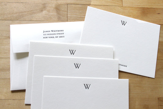 This handcrafted collection of personalized letterpress stationery by Moontree Letterpress is printed on 100% cotton paper using antique presses in Bucks County, Pennsylvania. Each set is individually hand-fed and custom printed with your name or initials, offering a timeless way to elevate correspondence or give a meaningful, lasting gift. Shop Standard and Executive notecards below.