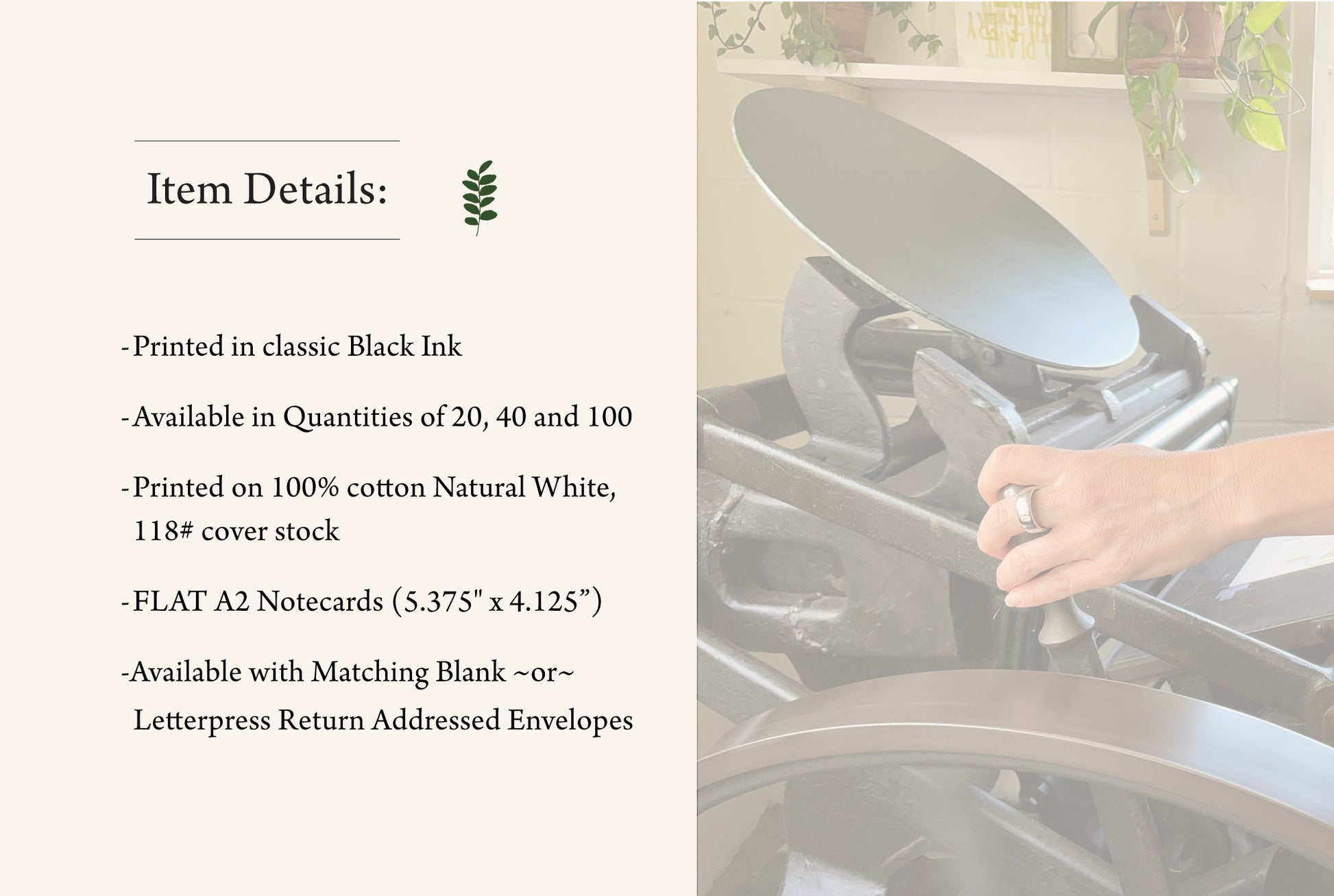 Personalized Letterpress Stationery in a stylish script font, hand-crafted on a 19th century printing press. Each set of notes is meticulously printed on high-quality, 100% recycled cotton paper using traditional letterpress techniques.