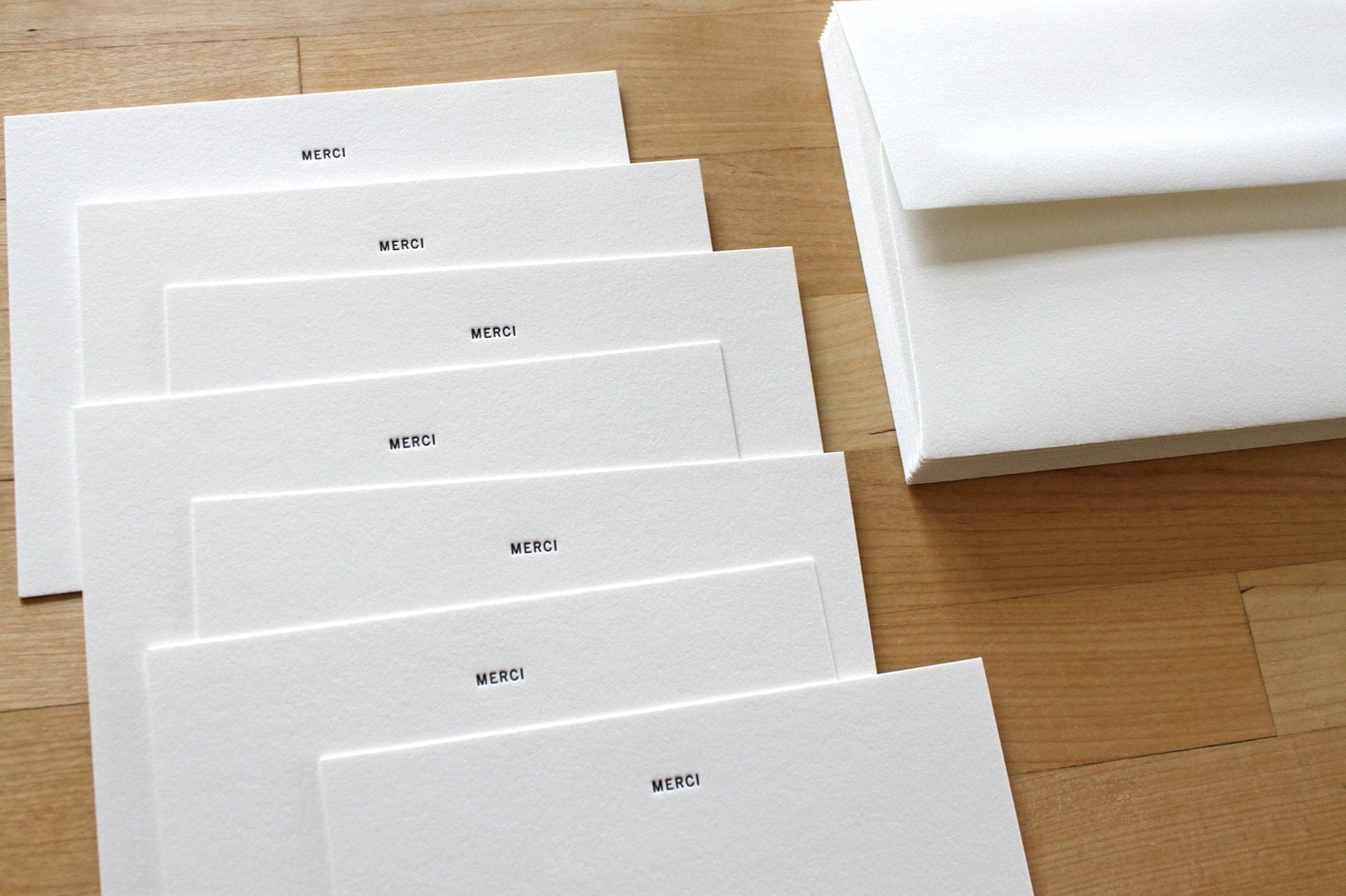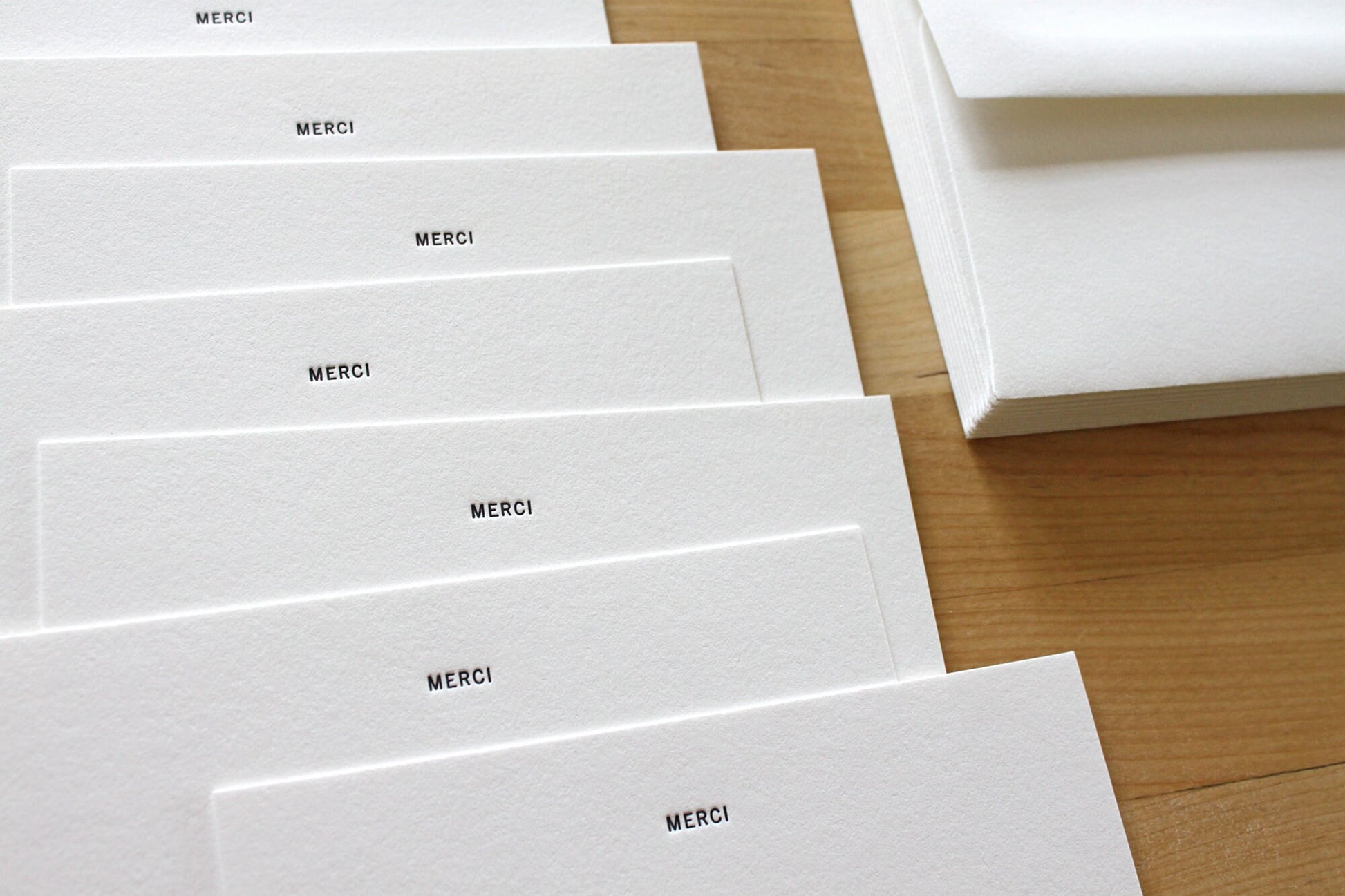 Letterpress Thank You Cards for personal stationery or Wedding thank you notes. Stunning minimalist letterpress thank you cards, featuring a sleek "merci" design that is sure to impress. Each card has been lovingly crafted using traditional letterpress techniques, resulting in a luxurious texture and deep impression that is sure to delight.